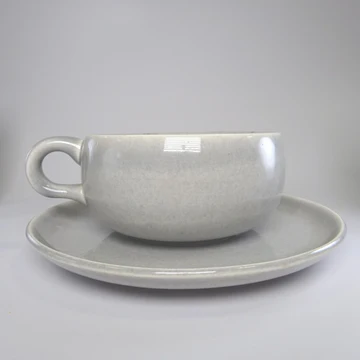 デザイナー Russel Wright(ラッセル・ライト)による、1939年から1959年に製造されたSteubenville(スチューベンヴィル)社製の「アメリカンモダン」シリーズのカップ&ソーサーセット。